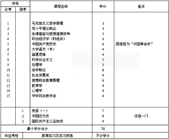 1、 本專業(yè)必考課15門,選考課任選1門,總計學分70分以上。