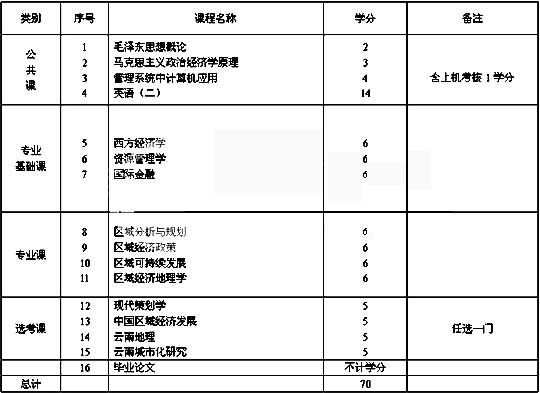 云南自考區(qū)域經(jīng)濟開發(fā)與管理(本科)專業(yè)考試計劃