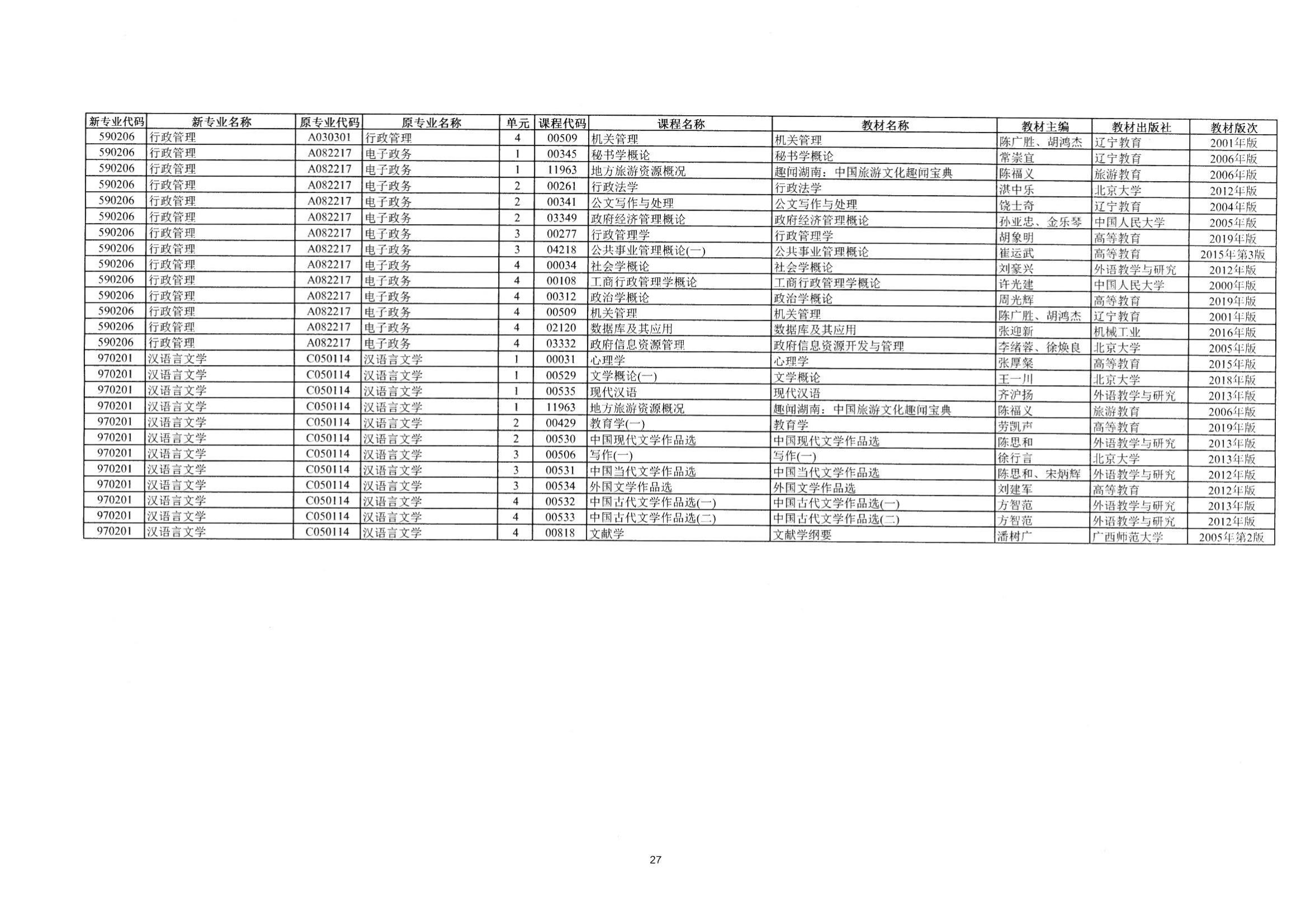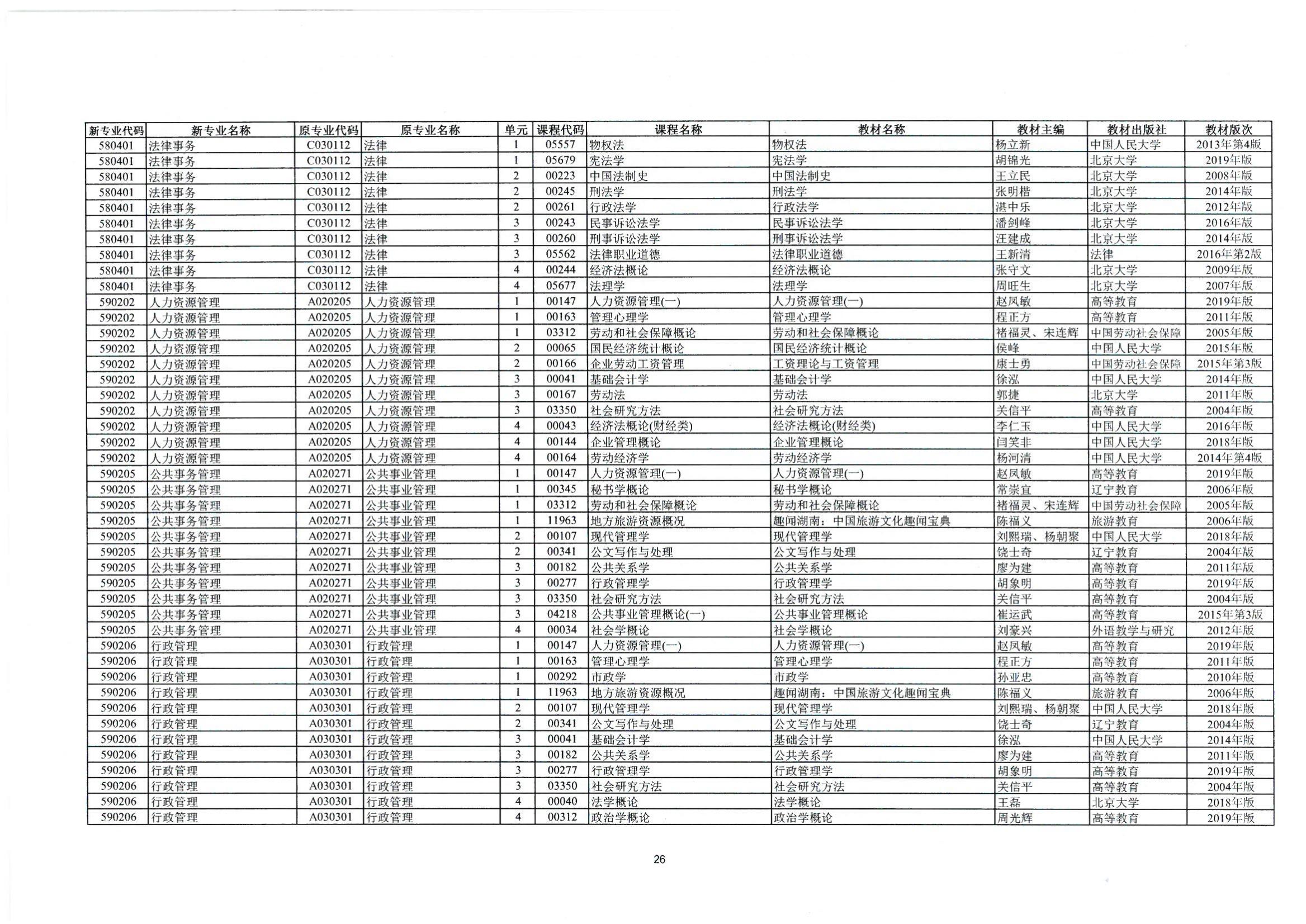 - 2024年10月湖南自考課程安排及教材目錄