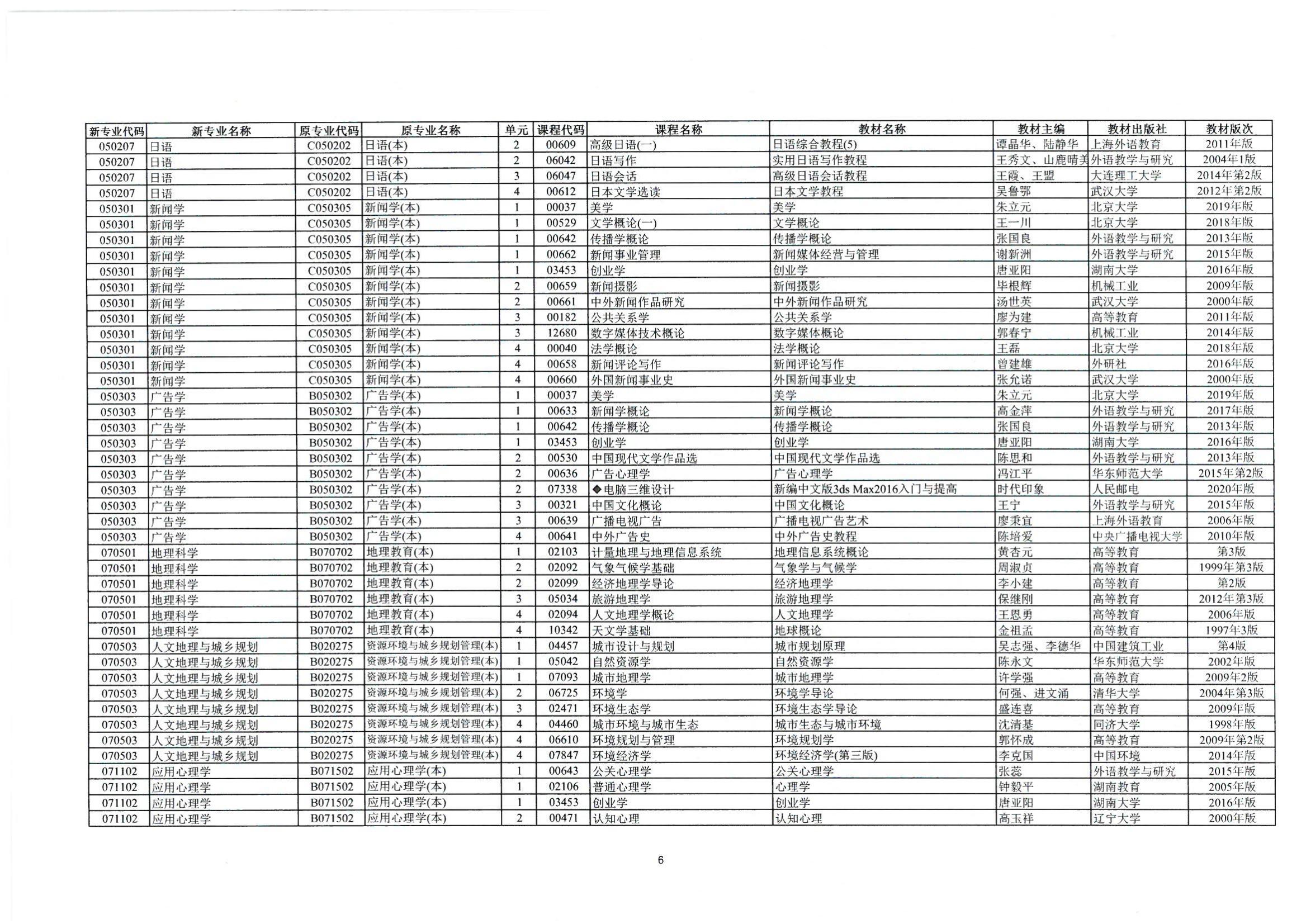 2023年10月湖南自考課程安排及教材目錄