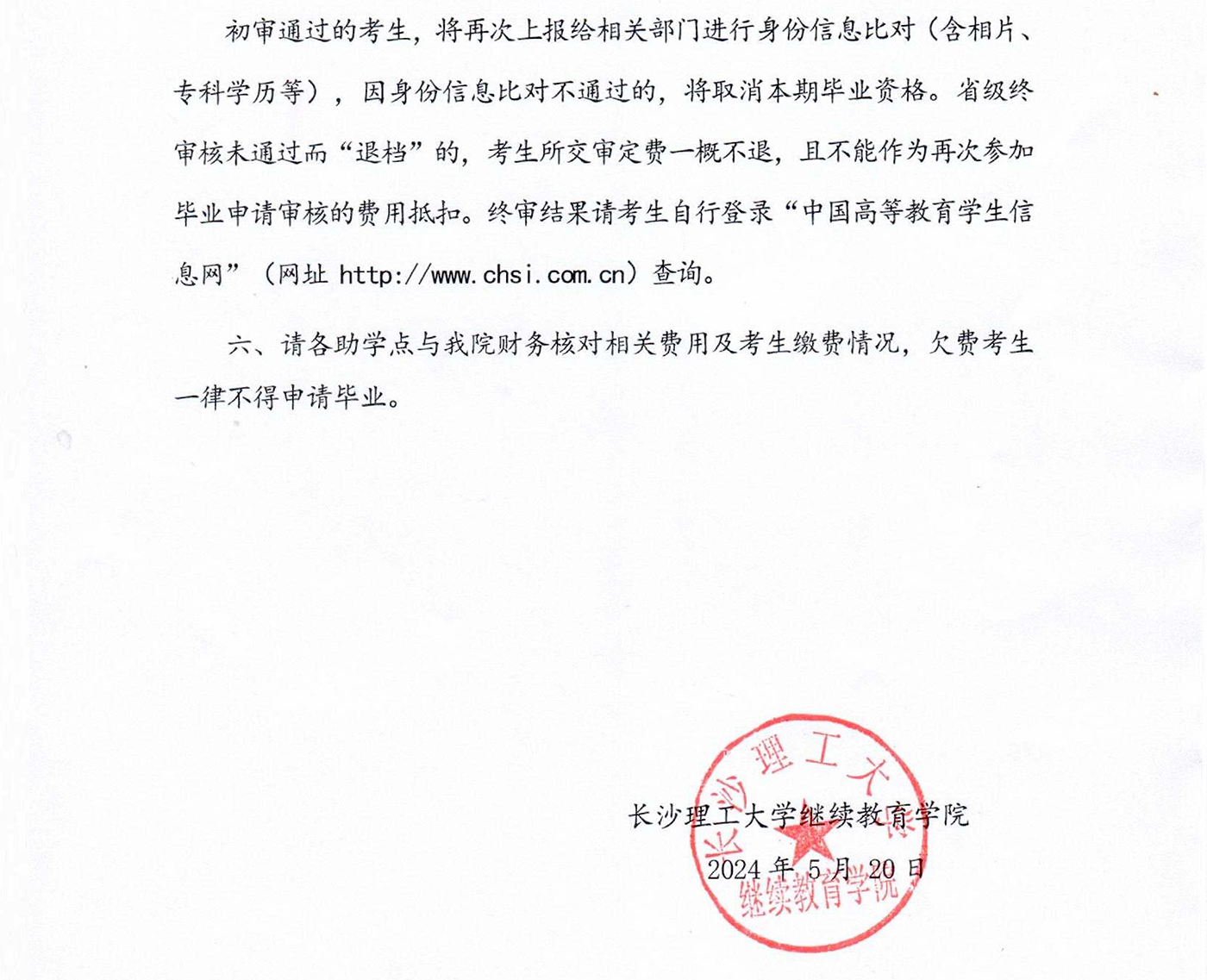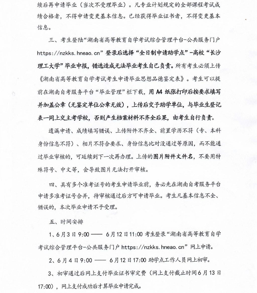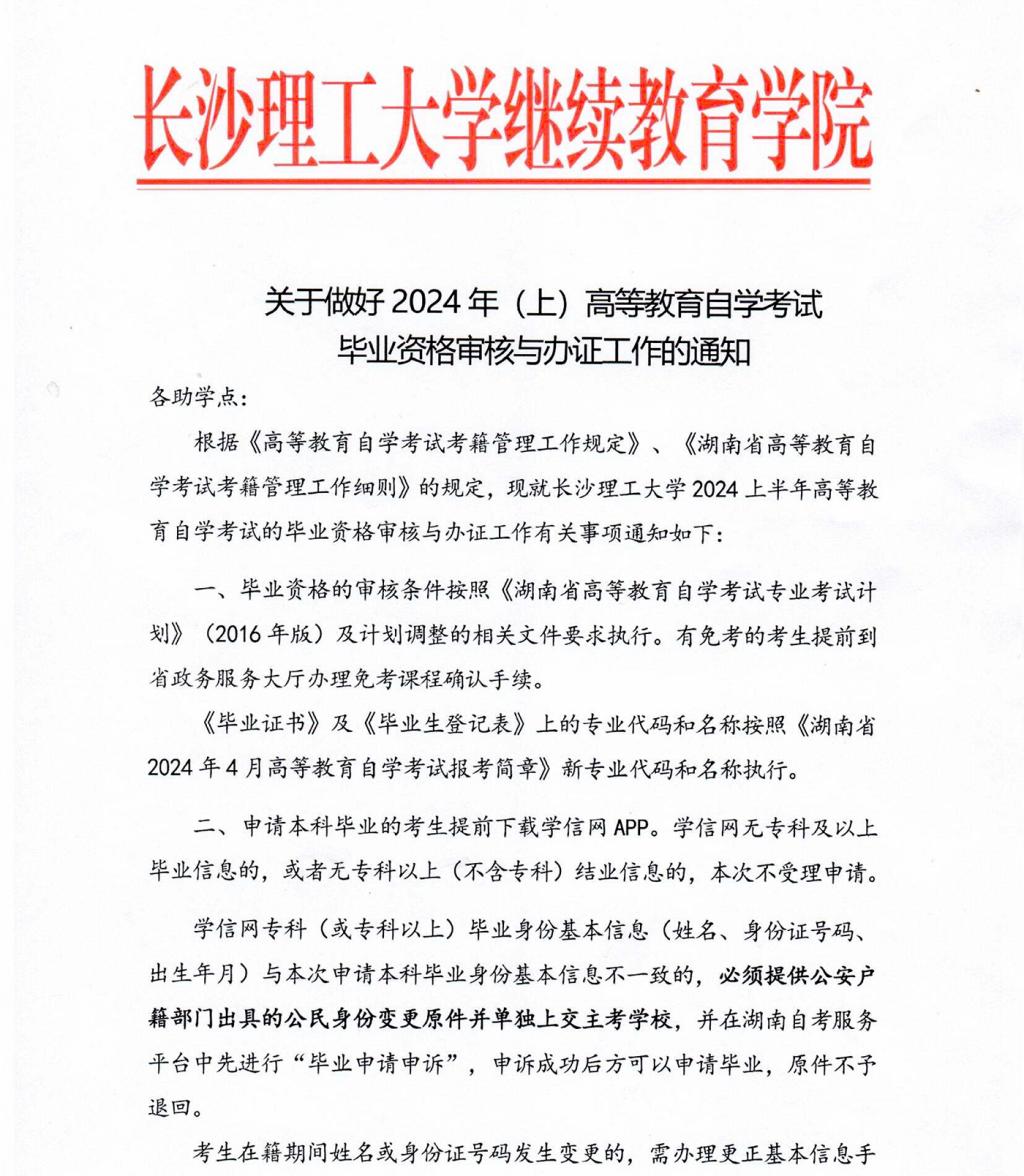 2024年上半年長(zhǎng)沙理工大學(xué)自考畢業(yè)資格審核與辦證工作通知