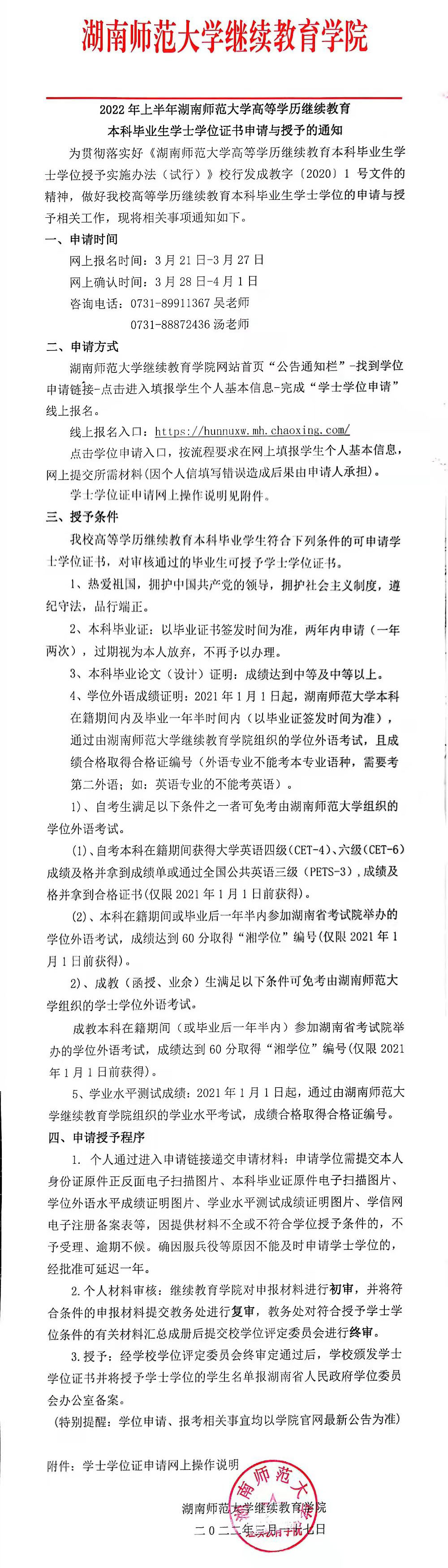 2022年上半年湖南師范大學(xué)自考本科學(xué)士學(xué)位申請(qǐng)通知