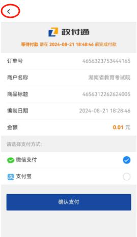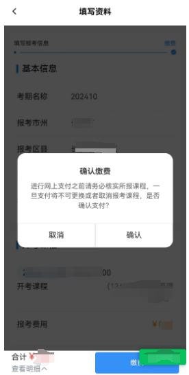考生應(yīng)認(rèn)真閱讀完確認(rèn)提交提示信息,再點(diǎn)擊“確定”按鈕,系統(tǒng)會(huì)彈出支付界面彈窗,如下圖所示: