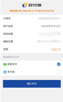 點(diǎn)擊“確認(rèn)支付”按鈕,彈出如下圖所示界面: