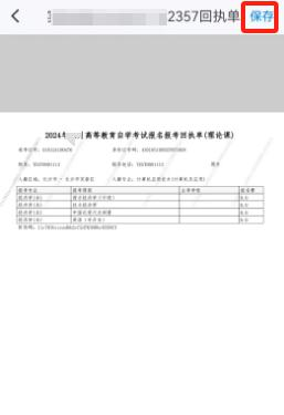 繳費(fèi)完成后,進(jìn)入 APP,顯示下圖 1-18 界面中,點(diǎn)擊左上角的“<”按鈕,返回報(bào)考界面,如下圖 1-19 所示,點(diǎn)擊“確認(rèn)”按鈕,進(jìn)入如圖1-20 所示界面,點(diǎn)擊“下載回執(zhí)單”按鈕,進(jìn)入圖 1-21 所示界面,點(diǎn)擊右上角的“保存”按鈕即可下載回執(zhí)單至本手機(jī)。