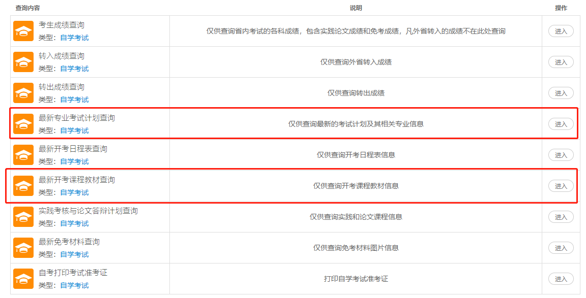 由于江蘇自考專業(yè)計劃所包含的科目不同,所以考試需要的教材也不同??忌傻卿浗K省教育考試公眾信息服務(wù)平臺查詢報考專業(yè)的專業(yè)計劃及課程教材(如下圖所示),或者直接點擊→2021年10月江蘇自考專業(yè)及主考院校一覽表,找到所報考專業(yè)的專業(yè)計劃,并點擊→2021年10月江蘇自考開考課程教材計劃表,通過課程代碼或名字搜索相應(yīng)的教材版本。