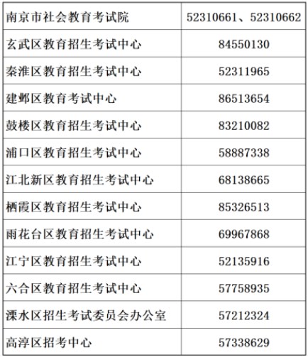 四、南京市各區(qū)招考中心咨詢電話