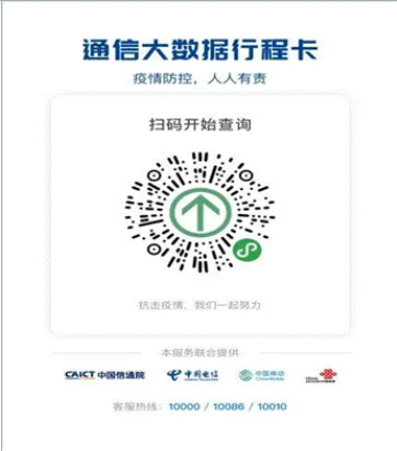 “一查”是指個人旅行軌跡查詢結(jié)果。獲取方法::微信掃描以下二維碼,按照提示操作即可獲得近14日內(nèi)的途經(jīng)地信息,截圖留存。
