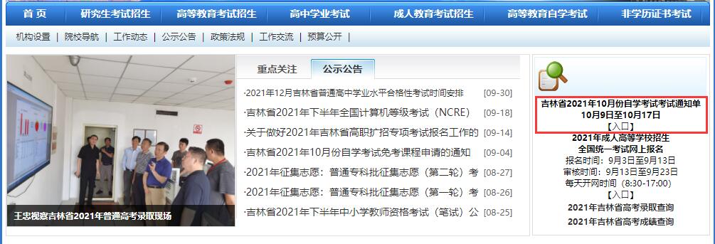 2021年10月吉林自考考試通知單打印入口已于10月9日-17日開通,入口位置如下所示。