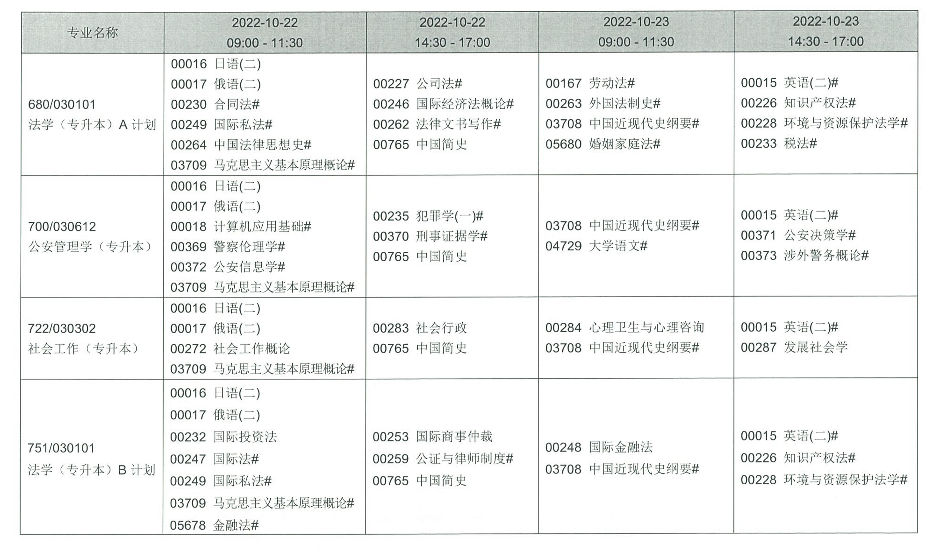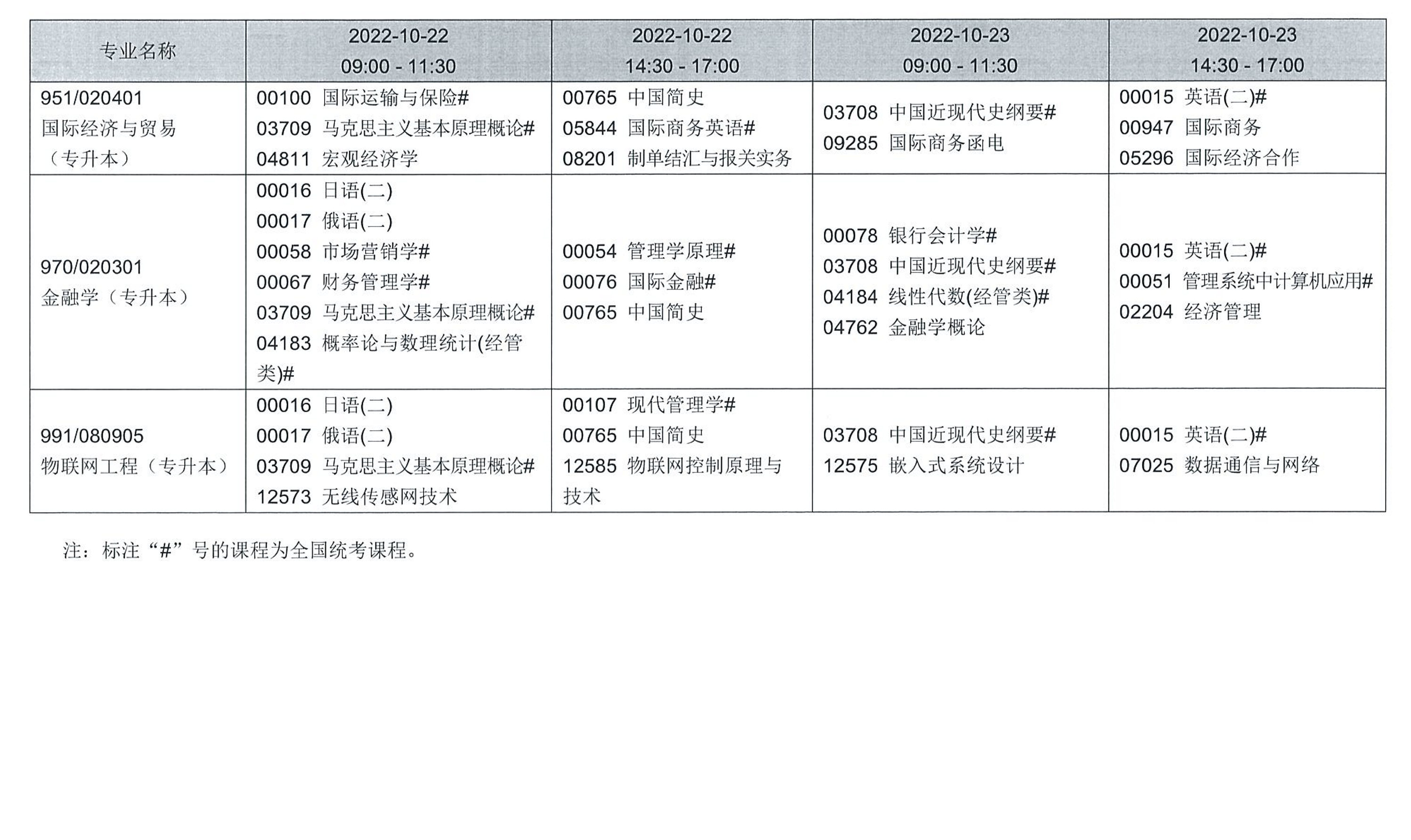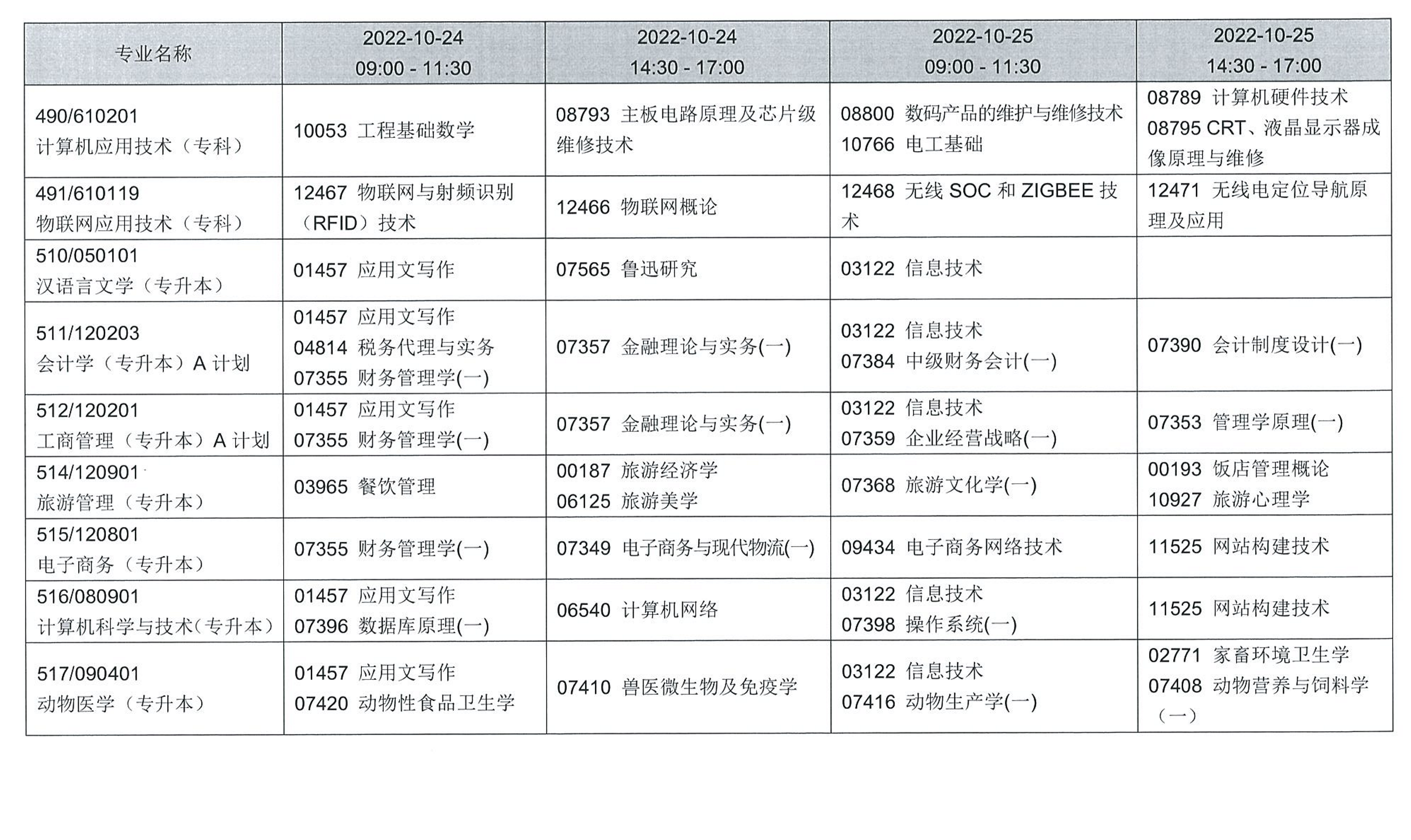 四、考試課程和時(shí)間安排