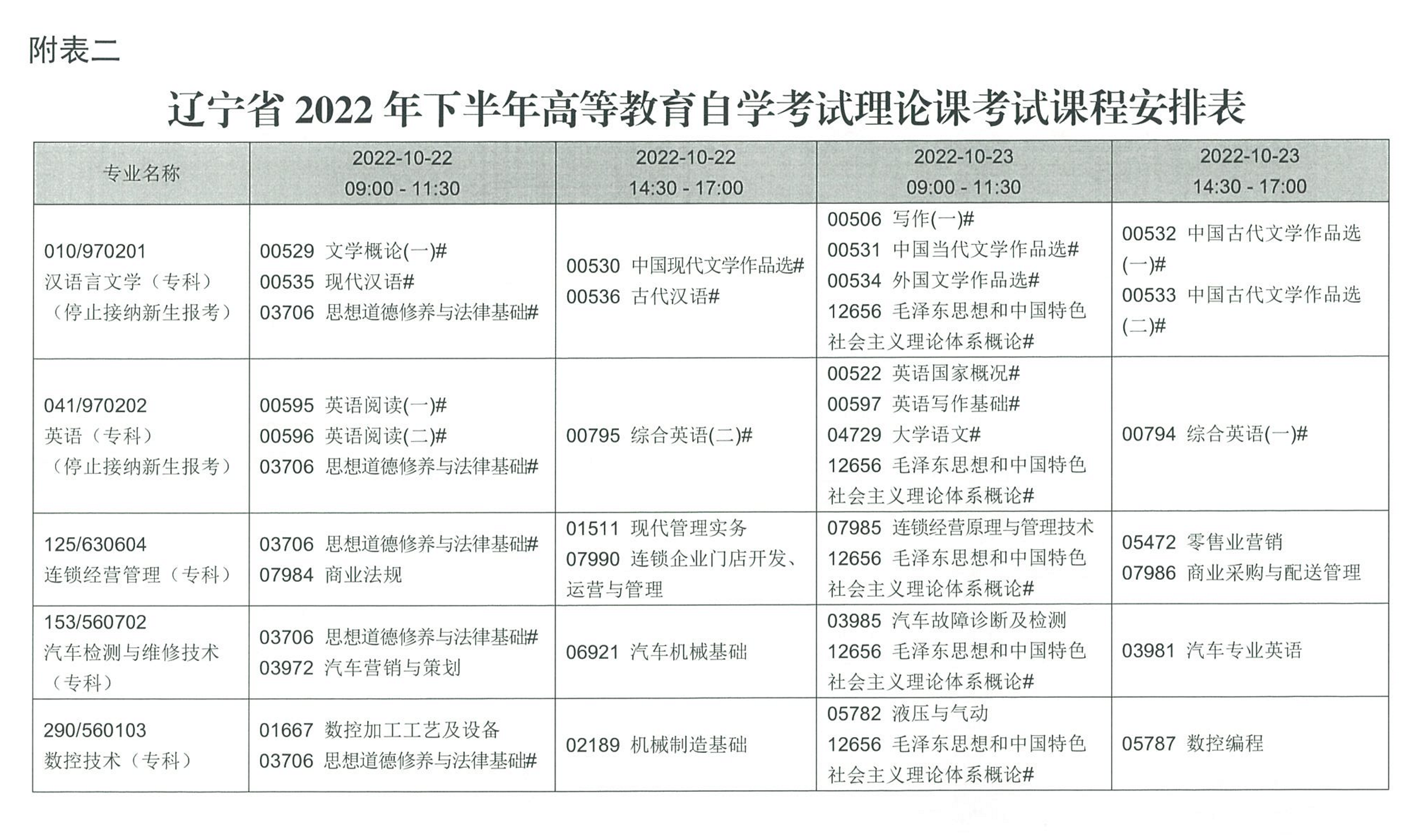 受新冠肺炎疫情影響,遼寧省2022年上半年理論課延期考試時(shí)間為10月24日、25日,2022年下半年理論課考試時(shí)間為10月22日、23日,上半年延期考試各專(zhuān)業(yè)考試課程和時(shí)間安排詳見(jiàn)附表,下半年各專(zhuān)業(yè)考試課程和時(shí)間安排詳見(jiàn)附表。2022年下半年實(shí)踐環(huán)節(jié)考核和論文答辯的時(shí)間由各主考學(xué)校確定,各專(zhuān)業(yè)實(shí)踐環(huán)節(jié)考核課程及時(shí)間安排詳見(jiàn)附表。