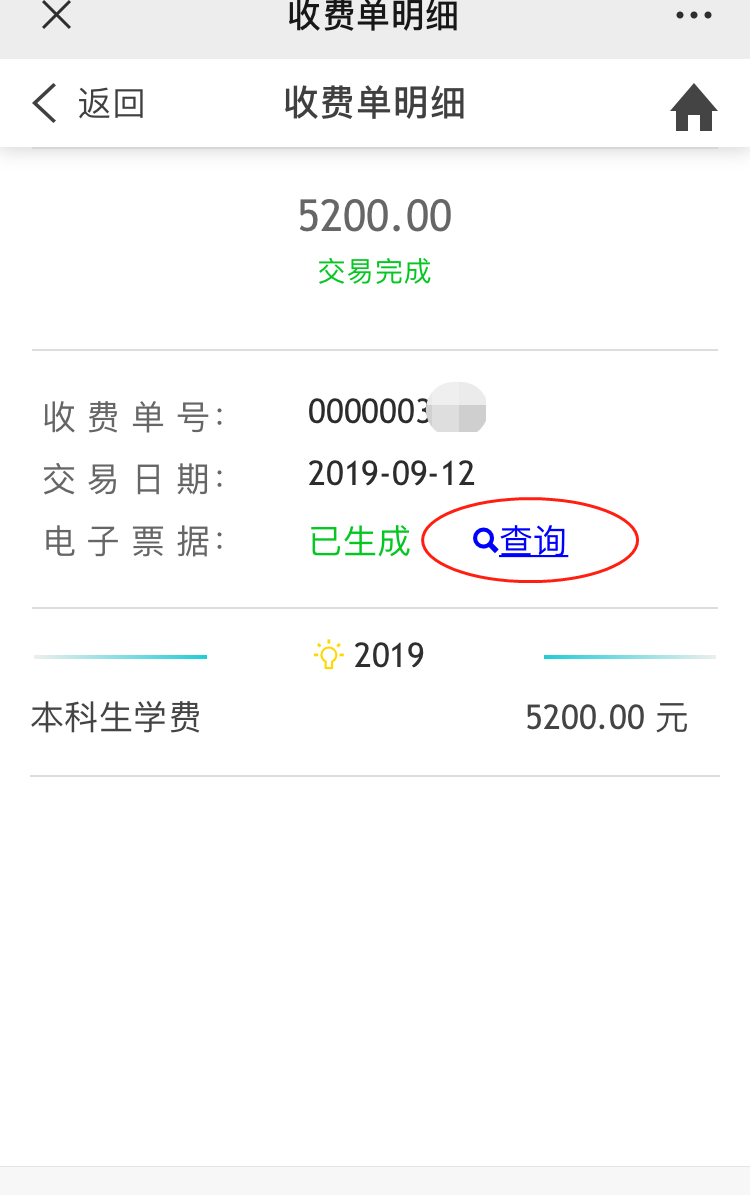 4.繳費成功后在左上角的菜單里選擇“已繳費查詢”,在“收費單明細”里查看生成的電子票據(jù)。