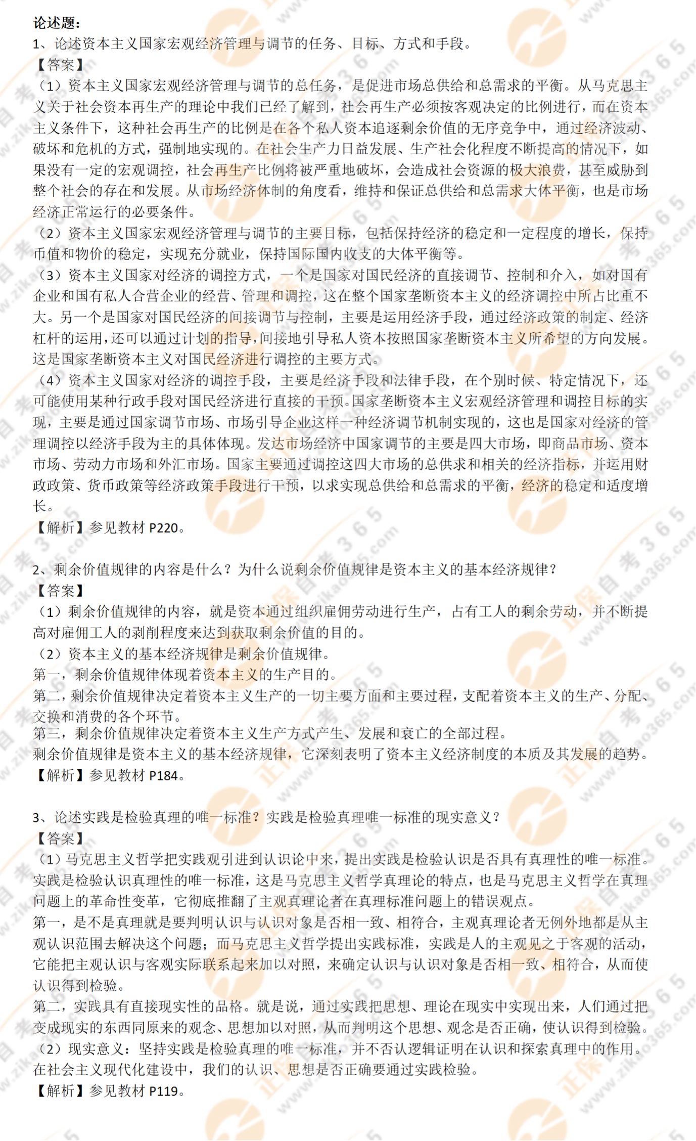 2021年10月自考馬克思主義基本原理概論部分試題及答案(考友回憶版)
