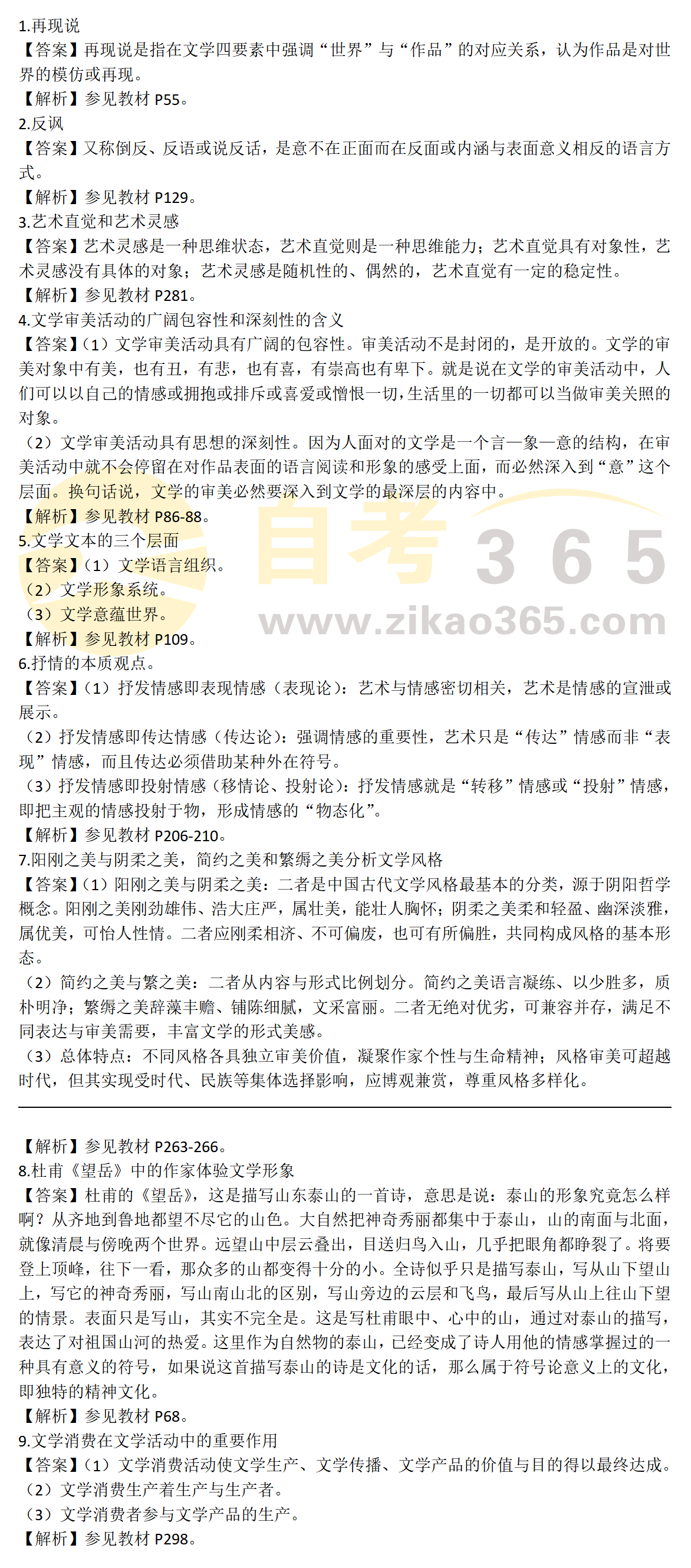 2026年4月自考文學(xué)概論(一)考試部分試題及答案(考友回憶版)