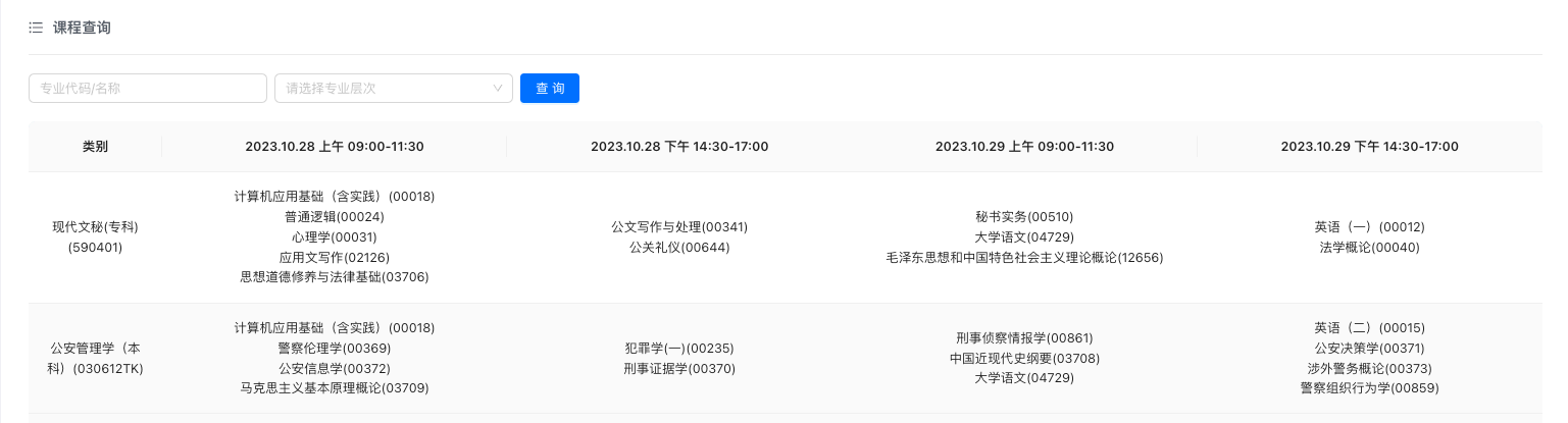 即可查詢(xún)本次考試課程信息。