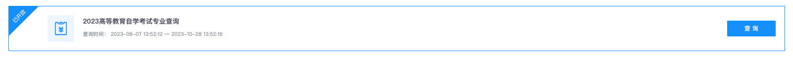 選擇查詢(xún)列表中的“2023 高等教育自學(xué)考試專(zhuān)業(yè)查詢(xún)”,并點(diǎn)擊“查詢(xún)”按鈕。