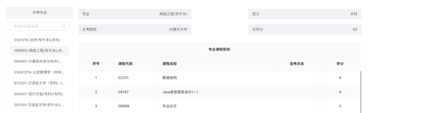 即可查詢(xún)本次開(kāi)考專(zhuān)業(yè)信息。