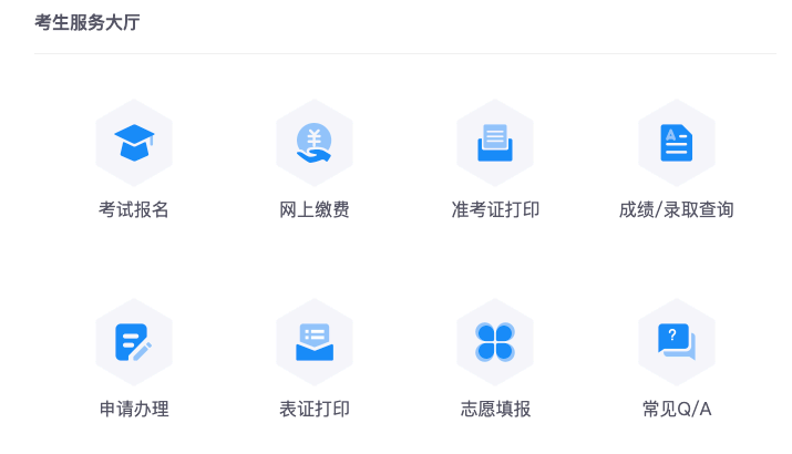 2、成功打開網(wǎng)站后,找到并點(diǎn)擊標(biāo)示為“自學(xué)考試”的模塊,找到并點(diǎn)擊“報(bào)名報(bào)考系統(tǒng)”按鈕,進(jìn)入內(nèi)蒙古自治區(qū)教育招生考試中心考生綜合服務(wù)平臺(tái)。