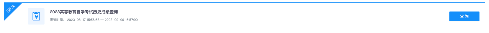 2、選擇列表中的“2023 高等教育自學(xué)考試歷史成績查詢”,并點(diǎn)擊“查詢”按鈕,即可查詢歷史考試成績。