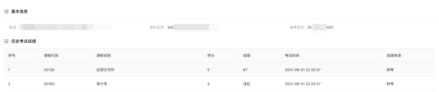 1、登錄平臺(tái)后,選擇“成績/錄取查詢”模塊,篩選考試類型為“自考”