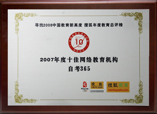 - 自考365榮獲“2008年度中國(guó)十佳網(wǎng)絡(luò)教育機(jī)構(gòu)”稱號(hào)