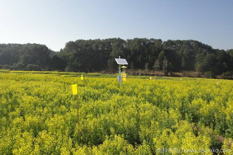 ▲尚科太陽能殺蟲燈和黃板在油菜花地里使用效果