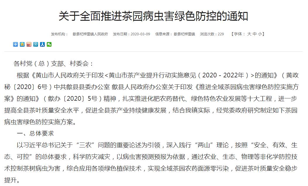 由農(nóng)業(yè)大國到農(nóng)業(yè)強(qiáng)國,離不開農(nóng)業(yè)的現(xiàn)代化,也離不開綠色農(nóng)業(yè)。隨著綠色農(nóng)業(yè)理念的加深,各地相繼出臺了很多關(guān)于茶產(chǎn)業(yè)高質(zhì)量發(fā)展的政策,從上而下推動茶園綠色防控體系的建設(shè)。在這些政策中,明確要求推薦使用太陽能殺蟲燈防治茶園病蟲害。