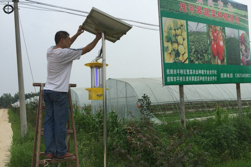 ▲大棚種植基地太陽能殺蟲燈掛燈高度示范