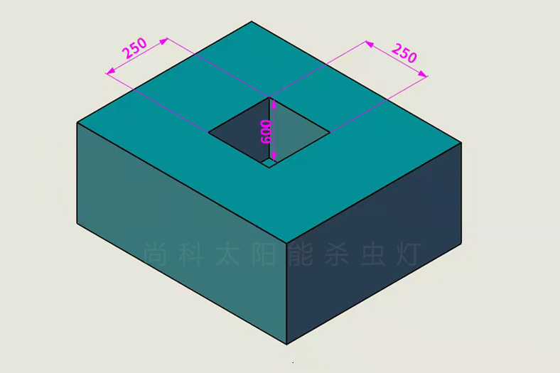 1、高桿太陽能殺蟲燈地籠標準:地籠尺寸:20*20*60cm=長*寬*高。如下圖所示: