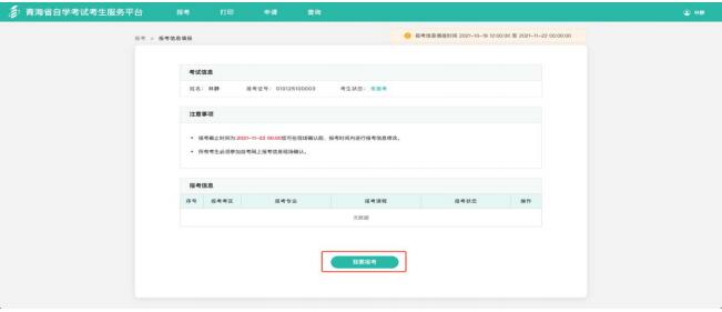 【填寫報考信息】根據(jù)頁面提示,選擇報考的考區(qū)、專業(yè)及課程信息,“報考考區(qū)”即實際考試地點。