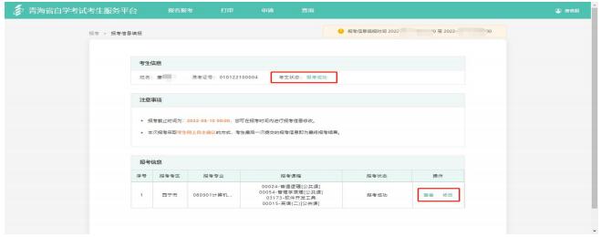 當(dāng)報考信息未審核或?qū)徍瞬煌ㄟ^可點擊頁面右上角“修改”按鈕進行修改,若已審核通過,則只能進行信息查看。
