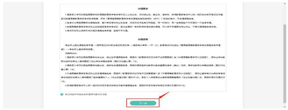 在彈出的高等教育自學(xué)考試報考簡章頁面中勾選“我已閱讀并知曉報考簡章相關(guān)內(nèi)容及注意事項”并點擊“下一步”。