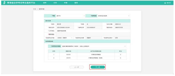 (4)根據(jù)系統(tǒng)提示,依次填寫免考申請信息,點擊“下一步”;