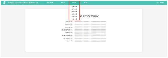 (1)進入青海省自學(xué)考試考生服務(wù)平臺,找到頁面上方“申請”并在彈出的菜單中選擇“成績復(fù)核”;