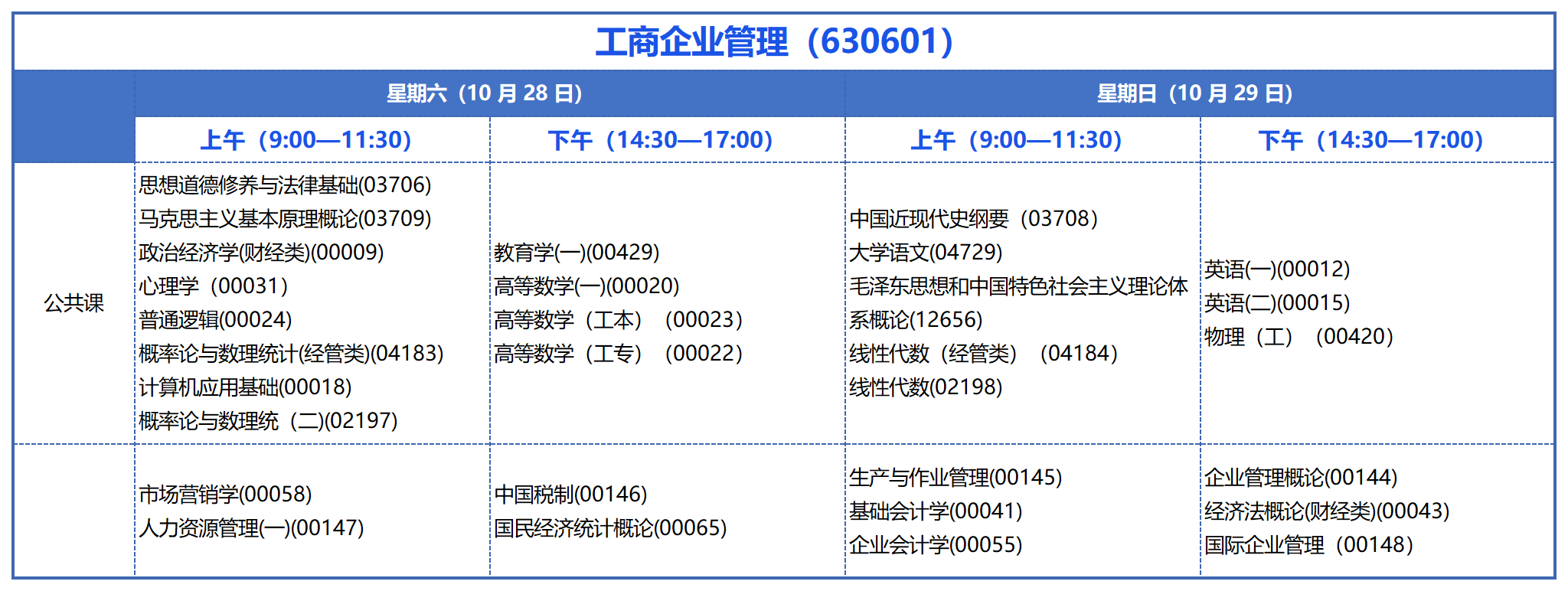 將考試安排和專業(yè)計劃一核對,我們發(fā)現(xiàn),6科公共課,10科專業(yè)課均有在10月考期安排考試。按照這個情況來說,后續(xù)青海自考也會正常安排工商企業(yè)管理??频目荚?,一般不會存在想報考的科目不能參加考試,最終影響考生畢業(yè)的情況,考生大可以放心報考。