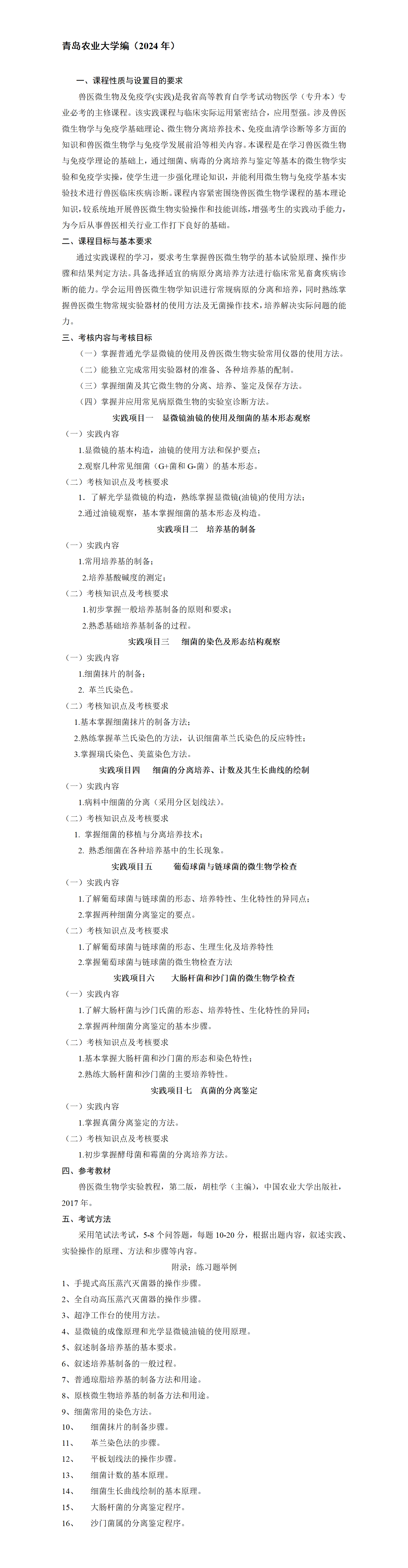 山東自考07411獸醫(yī)微生物及免疫學(實踐)課程考試大綱