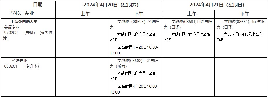 2024年4月上海市高等教育自學(xué)考試上海外國語大學(xué)各專業(yè)課程考試日程安排表(第三周)