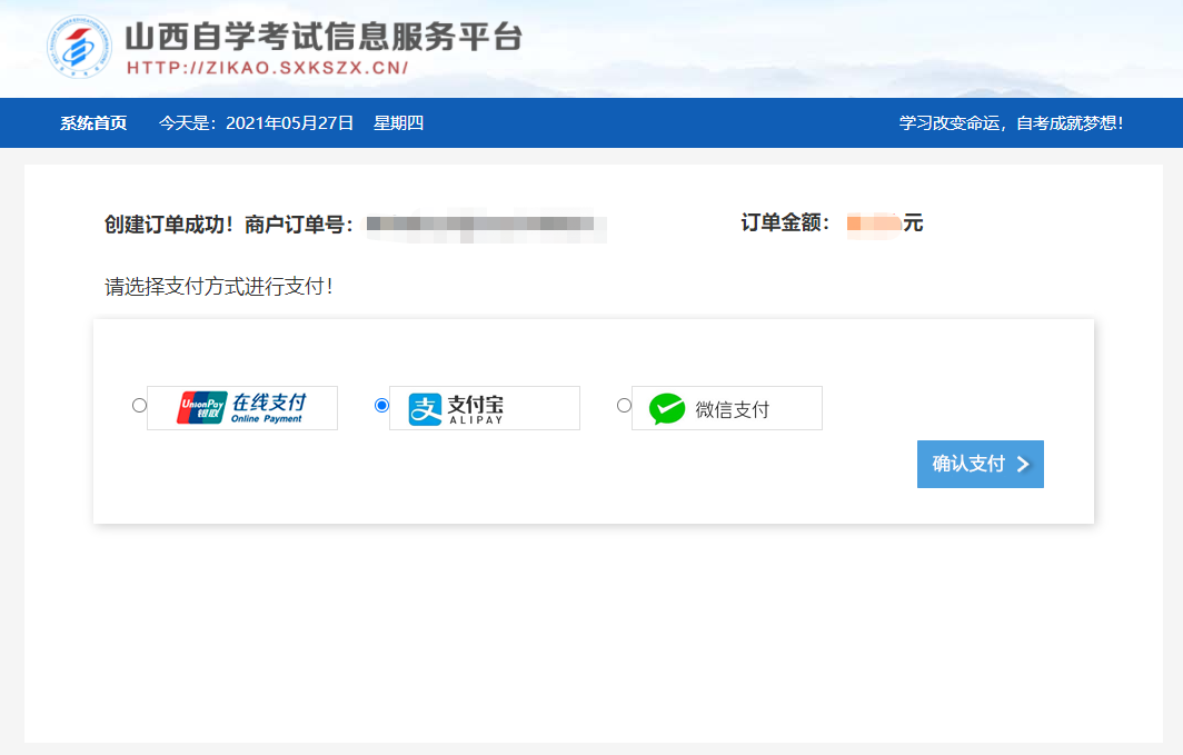 ①考生畢業(yè)申請(qǐng)信息在忻州市忻府區(qū)招辦全部審批通過(guò)后才可進(jìn)行支付,請(qǐng)考生及時(shí)關(guān)注審批進(jìn)度。