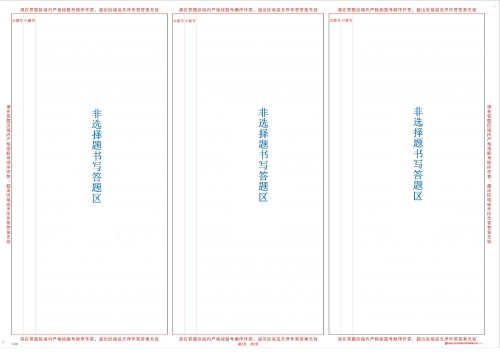 答題卡卡面包括手寫信息區(qū);貼條形碼區(qū);缺考標(biāo)記區(qū);注意事項(xiàng)區(qū);考生筆跡確認(rèn)區(qū);選擇題填涂答題區(qū);非選擇題書寫答題區(qū)等部分。樣卡如下: