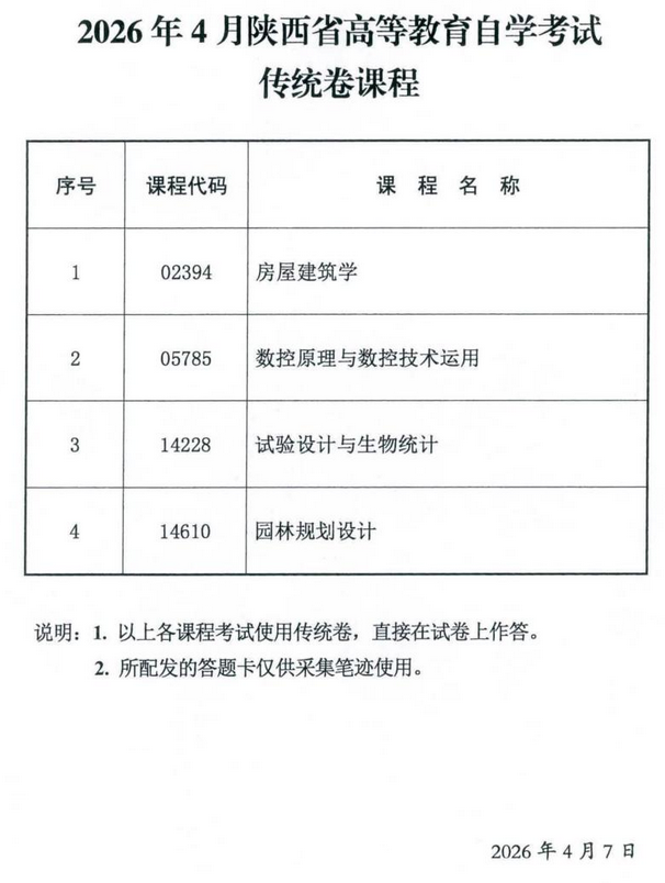 2026年4月陜西省自學(xué)考試專用答題卡課程、傳統(tǒng)卷課程