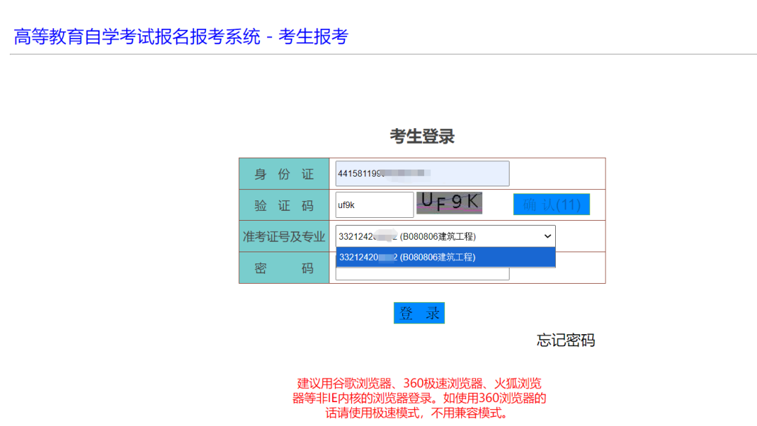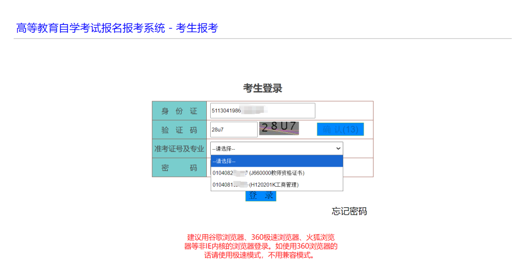 2.只有單個(gè)準(zhǔn)考證號(hào)的,系統(tǒng)會(huì)默認(rèn)選中。