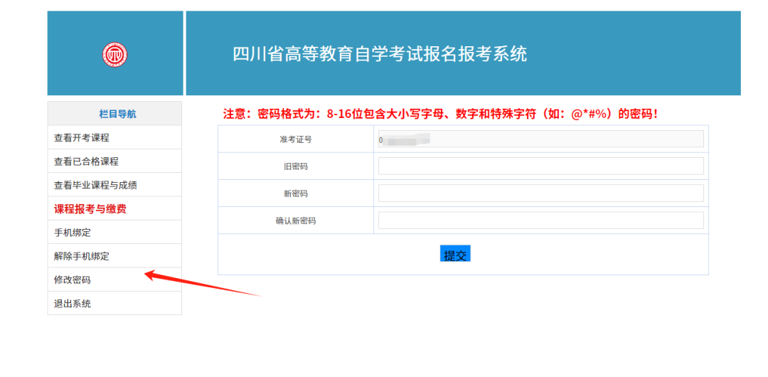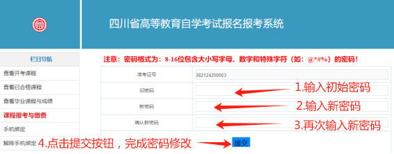 (4)點(diǎn)擊“提交”按鈕,完成密碼修改。