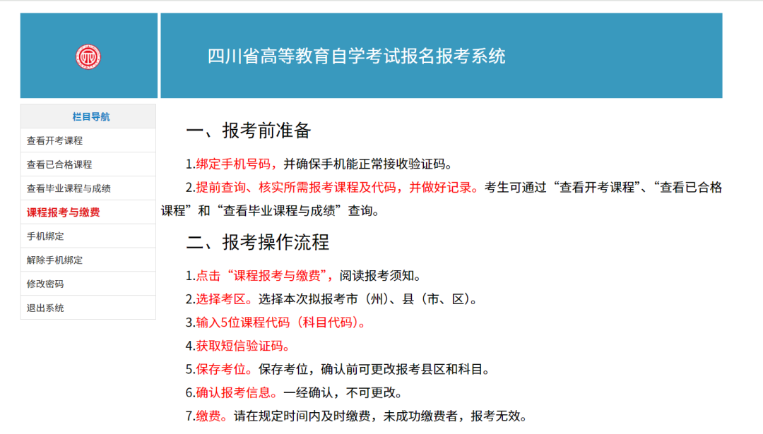 1.點(diǎn)擊左邊菜單欄“課程報(bào)考與繳費(fèi)”,查看報(bào)考須知。