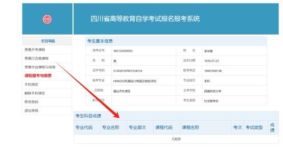 4.查看已合格課程。點(diǎn)擊“查看已合格課程”可以查到考生考籍信息及已經(jīng)取得合格成績(jī)的課程信息。