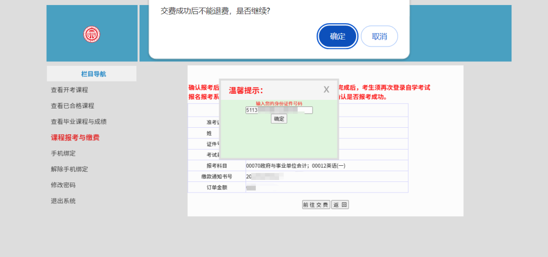 (2)報(bào)考課程一經(jīng)繳費(fèi)成功,則無(wú)法更換考區(qū)和更改科目信息,也不得再次報(bào)考(即使考生未報(bào)考的考試單元在該考區(qū)仍有考位容量)。