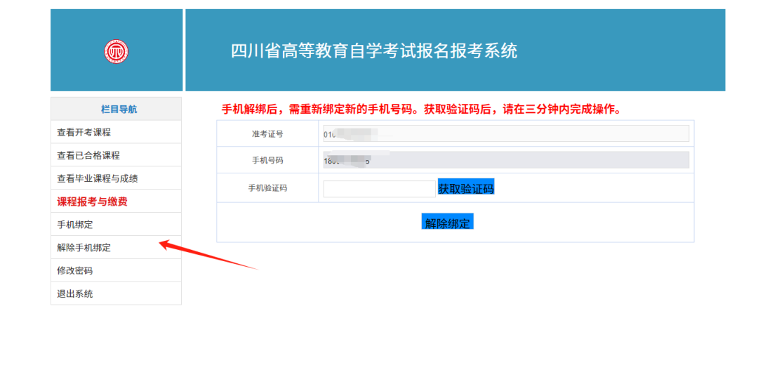 特別提醒:無(wú)法自行解綁手機(jī)的,可到注冊(cè)地縣(市、區(qū))招生考試機(jī)構(gòu)或主考學(xué)校解綁。