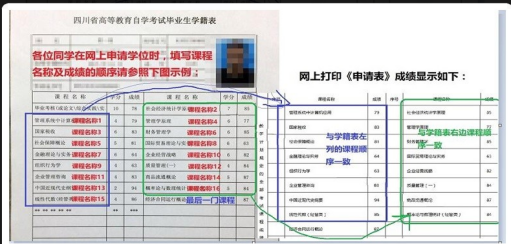 (三)自考畢業(yè)生網(wǎng)上申請(qǐng)時(shí),需要在“其它信息填寫”中自行填報(bào)課程名稱及成績(jī),為保證最后網(wǎng)上打印的《學(xué)位申請(qǐng)表》中課程順序符合要求,請(qǐng)務(wù)必按下圖所示順序填報(bào):