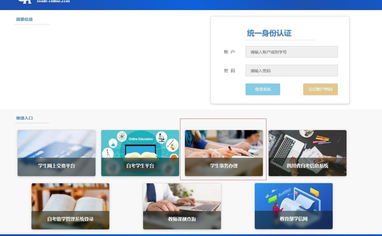 (一)進(jìn)入首頁(yè)右上角“西財(cái)在線入口—學(xué)生事務(wù)辦理—學(xué)位申請(qǐng)”(網(wǎng)上申請(qǐng)須使用谷歌或火狐瀏覽器)