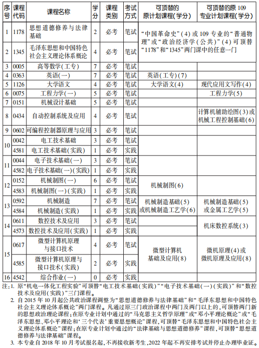 2022年4月天津自考專科機(jī)電一體化工程專業(yè)計(jì)劃(停考過渡)