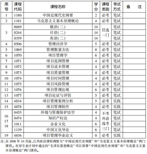 2022年4月天津自考本科項(xiàng)目管理專業(yè)計(jì)劃